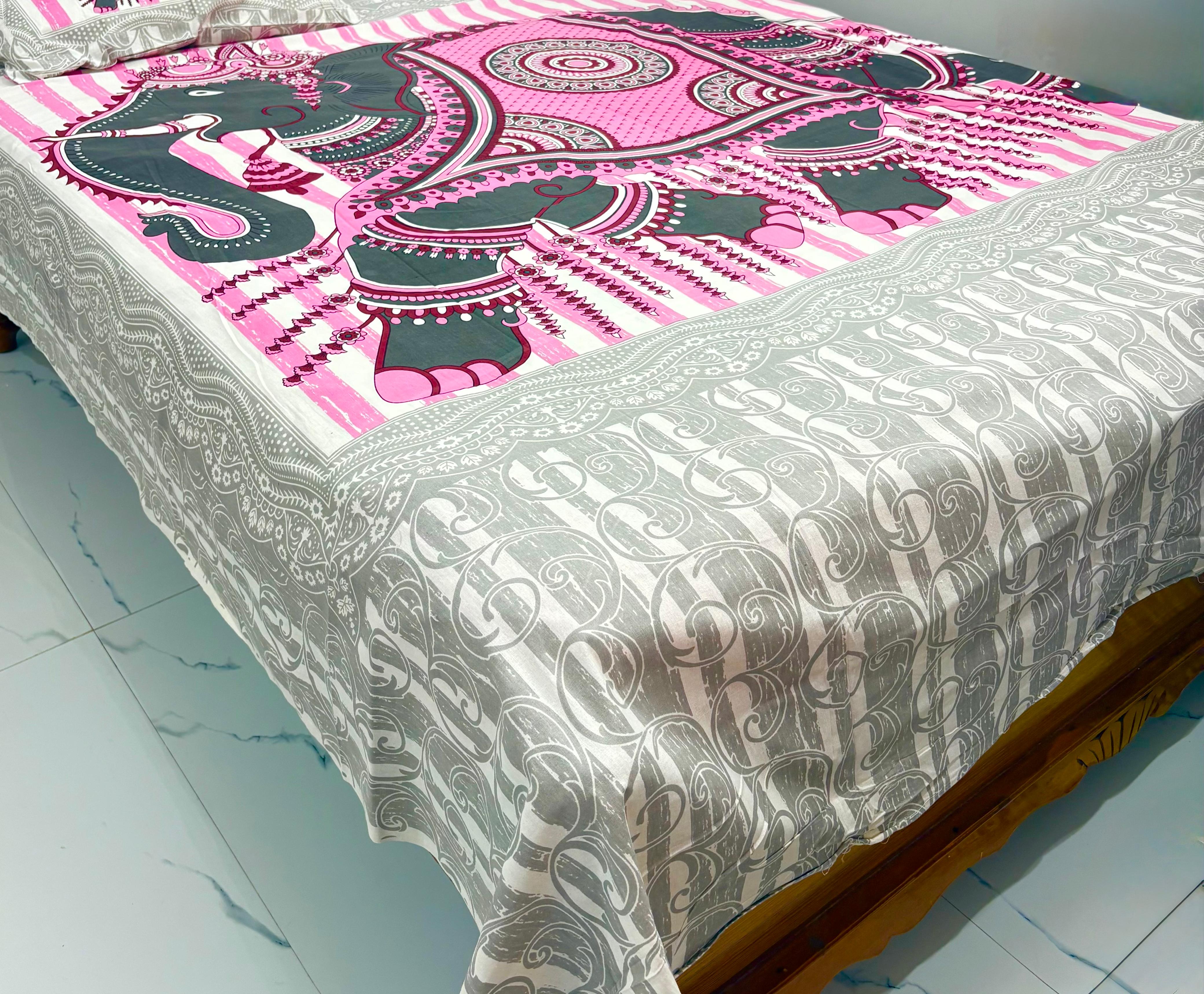 The Rani Elephant Print Pure Cotton Queen Size Bedsheet | 93x108 Inch - Aaryan Home Furnishings