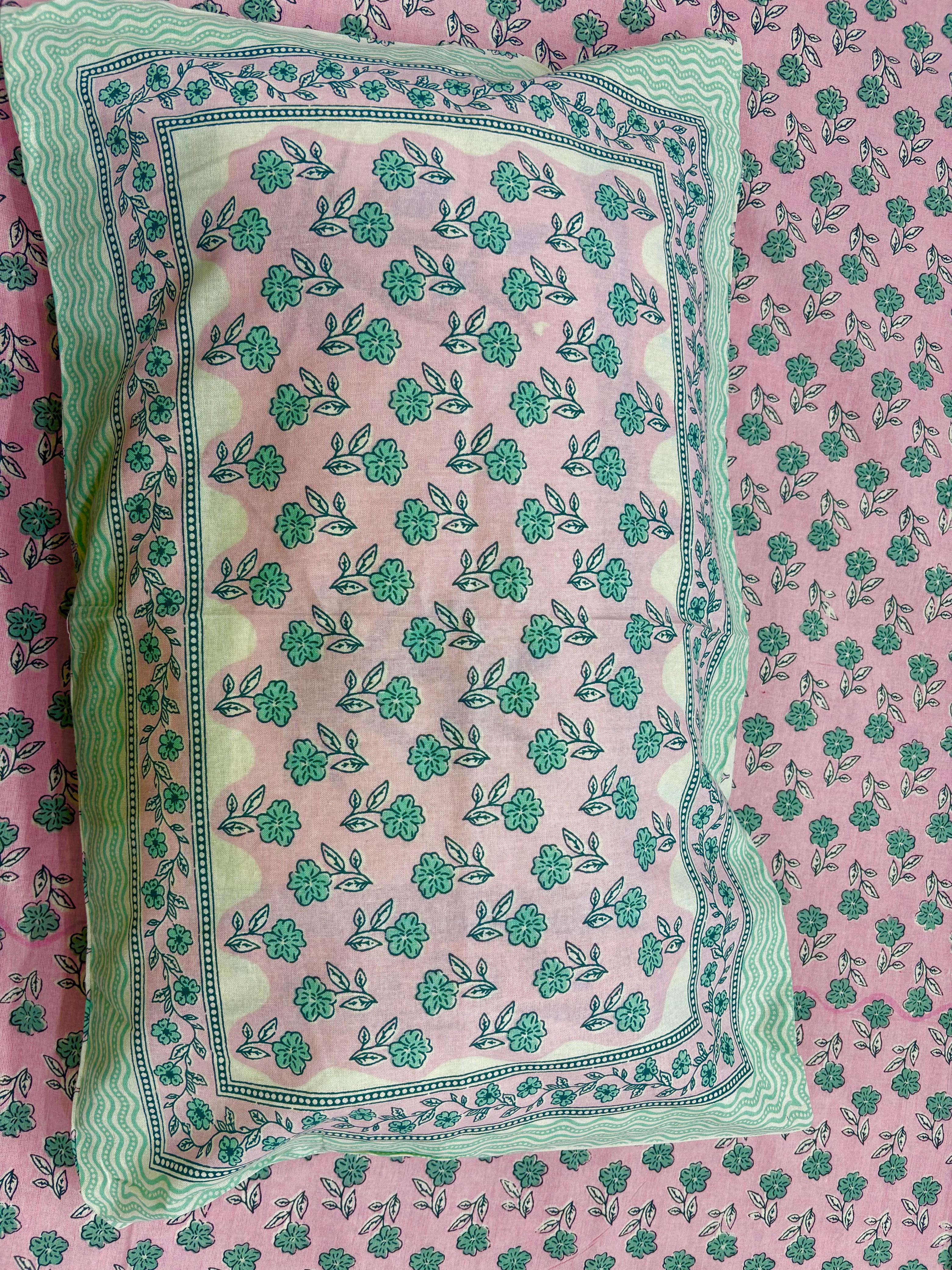 Pastel Pink Small Floral Block Print Pure Cotton King Size Bedsheet | 95 X 108 Inch - Aaryan Home Furnishings