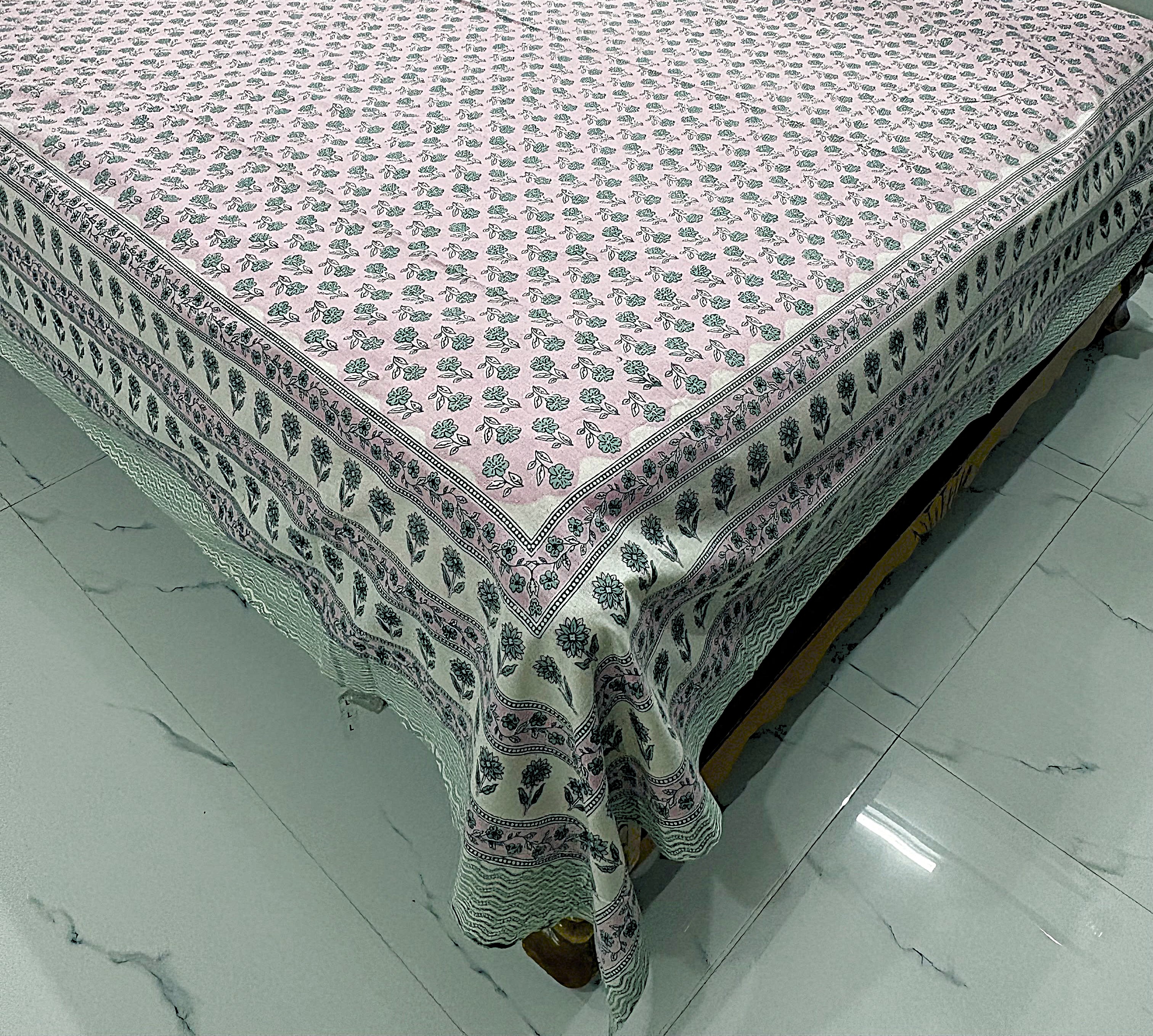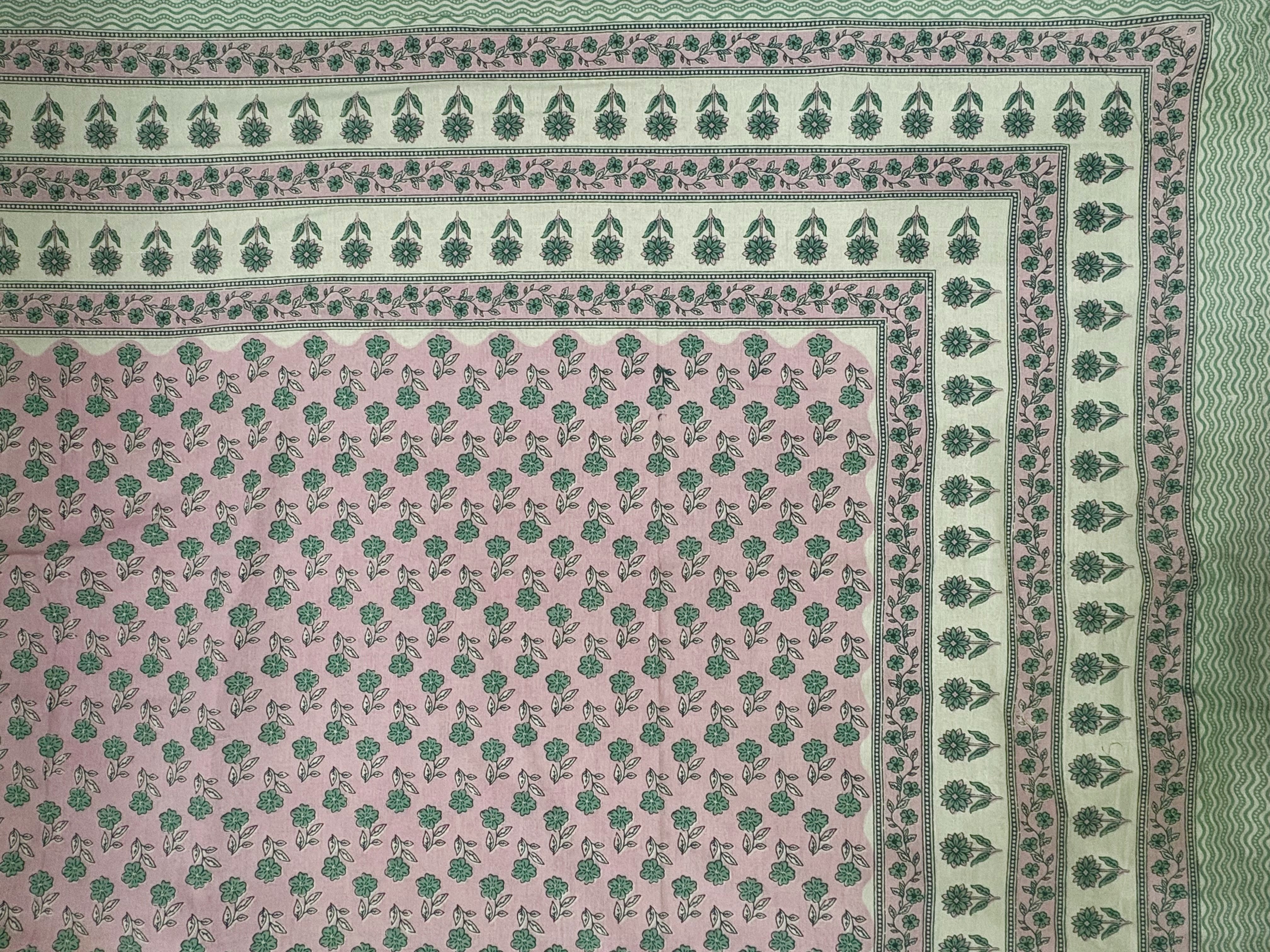 Pastel Pink Small Floral Block Print Pure Cotton King Size Bedsheet | 95 X 108 Inch