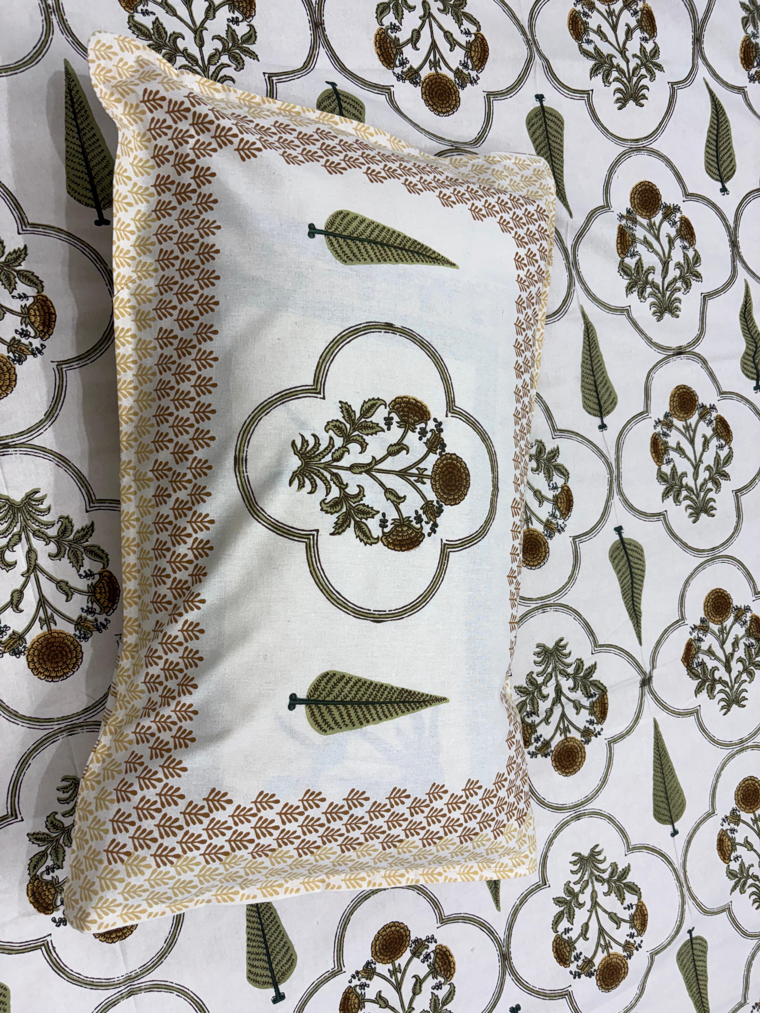 Earth Tone Olive Green & Brown Medallion Block Print Pure Cotton King Size Bedsheet | 95 X 108 Inch