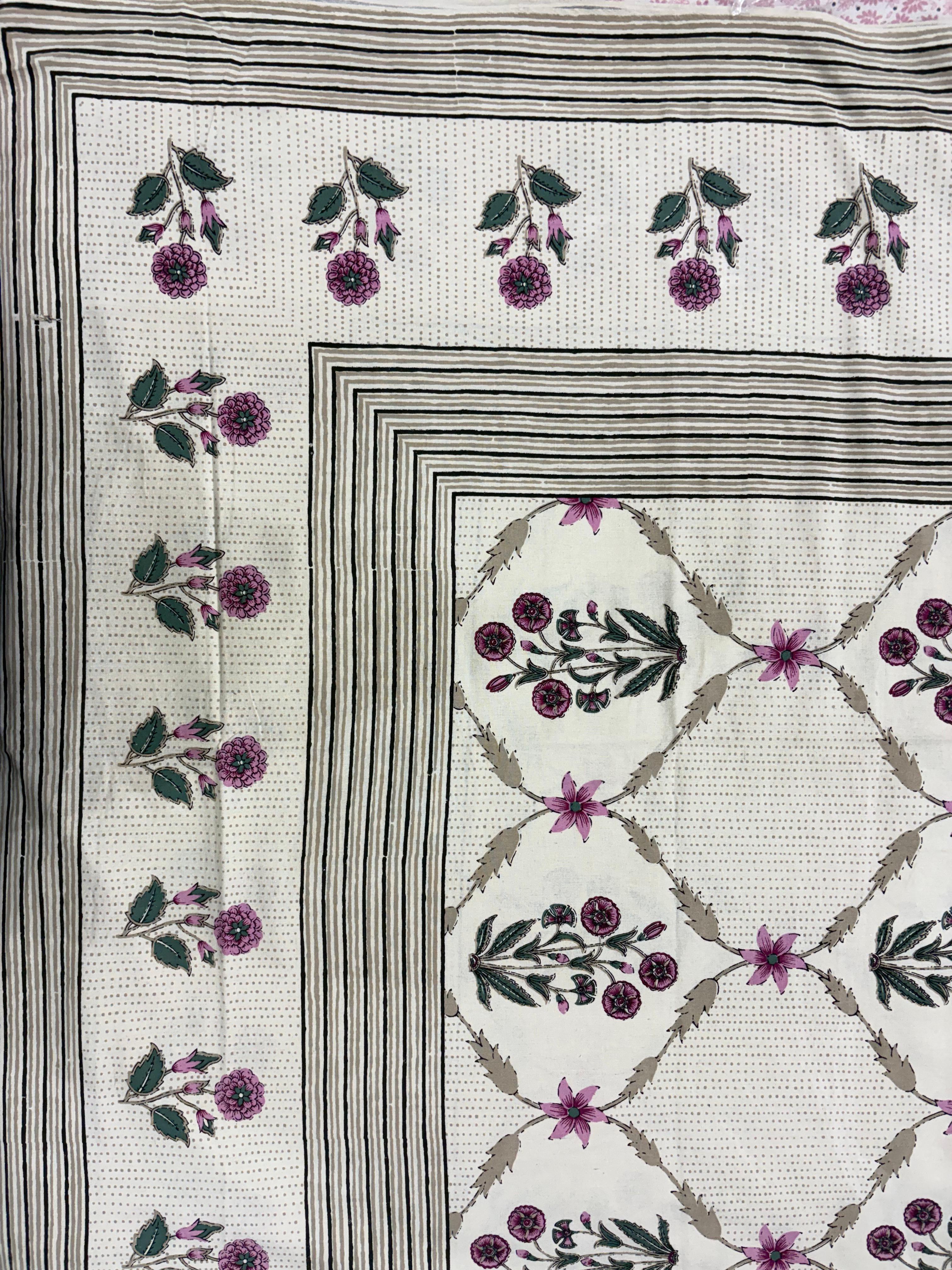 Jaipuri Pink Tulip Motif Block Print Pure Cotton King Size Bedsheet | 100 X 108 Inch
